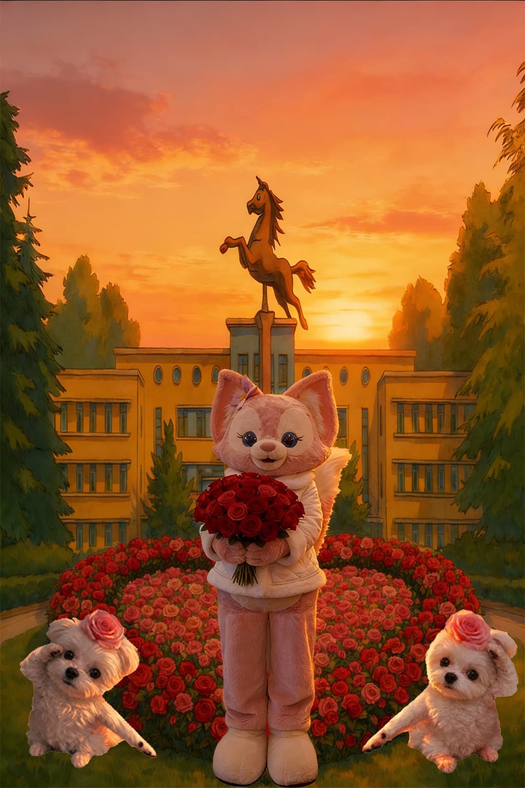 贝尔来给琢琢姐送情人节玫瑰了